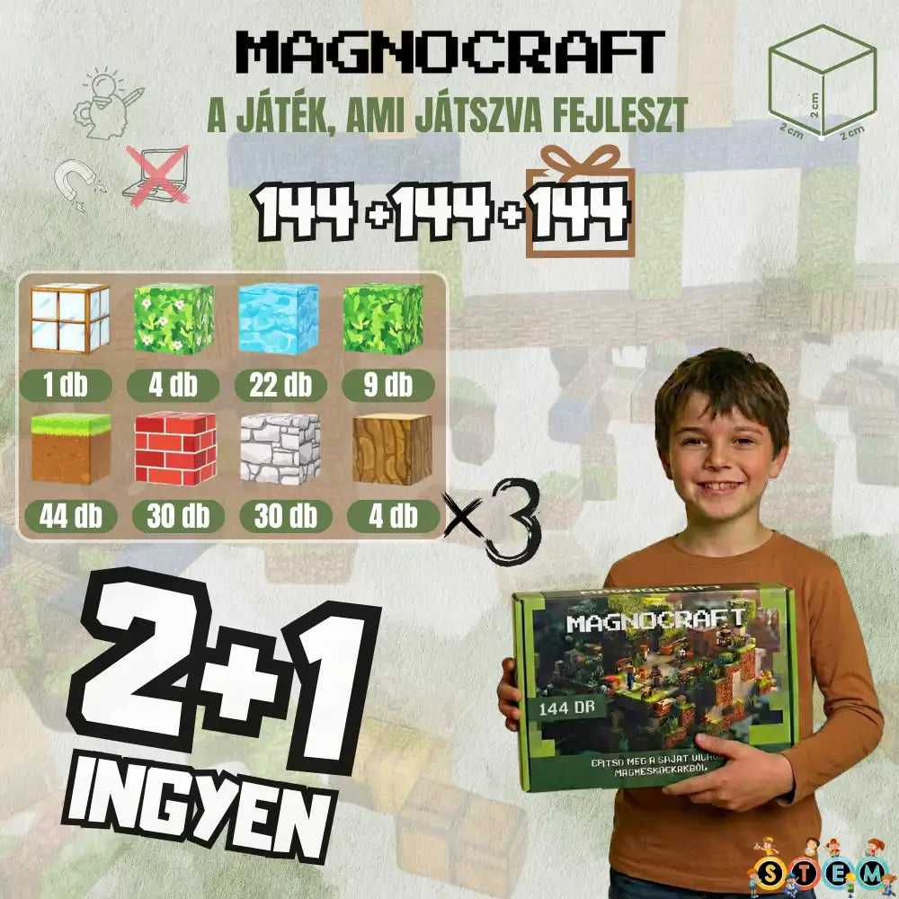 A MagnoCraft kockák összetapadnak, így repülőn és autóban is egyben marad az építmény. Nem borul fel, nem gurul szét – a gyerek pedig hosszú időre elmélyülten épít. Közben észrevétlenül fejlődik a gondolkodása és a kreativitása. Nálunk az egyik legjobb „utazós” játék lett.